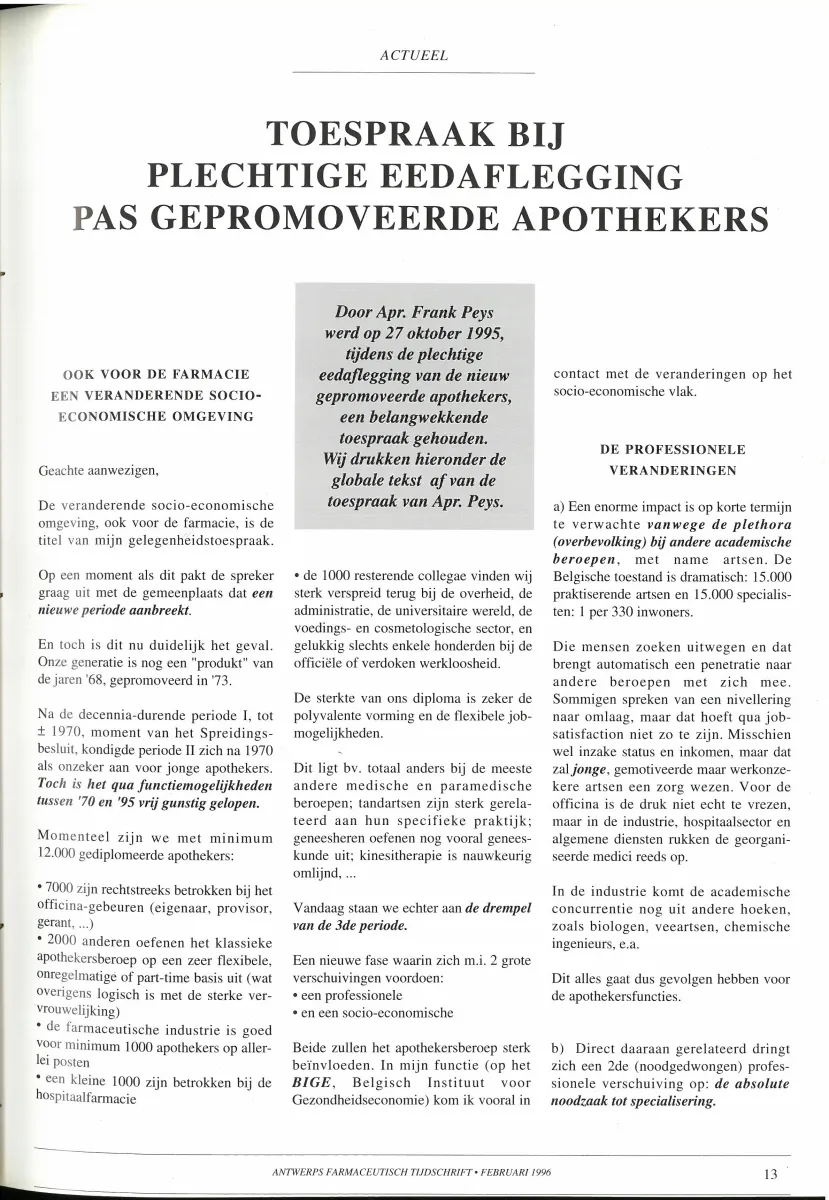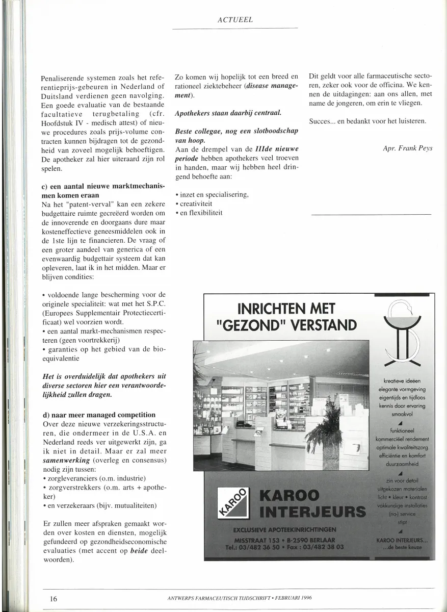Kruimelpad Home AFT-100 Het Antwerps Farmaceutisch Tijdschrift bestaat al 100 jaar! We nemen je graag mee doorheen de geschiedenis van het AFT. Verenigingsleven door de jaren heen ARTIKEL 1 Belangenbehartiging door de jaren heen ARTIKEL 2 Rol van de apotheker door de jaren heen ARTIKEL 3 Wetenschappelijke benadering door de jaren heen ARTIKEL 4 Reclame door de jaren heen ARTIKEL 5